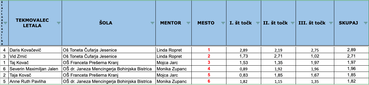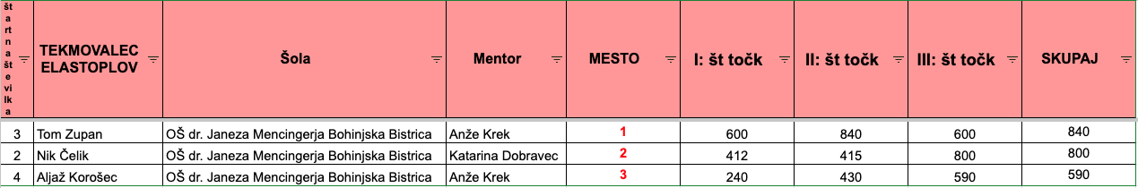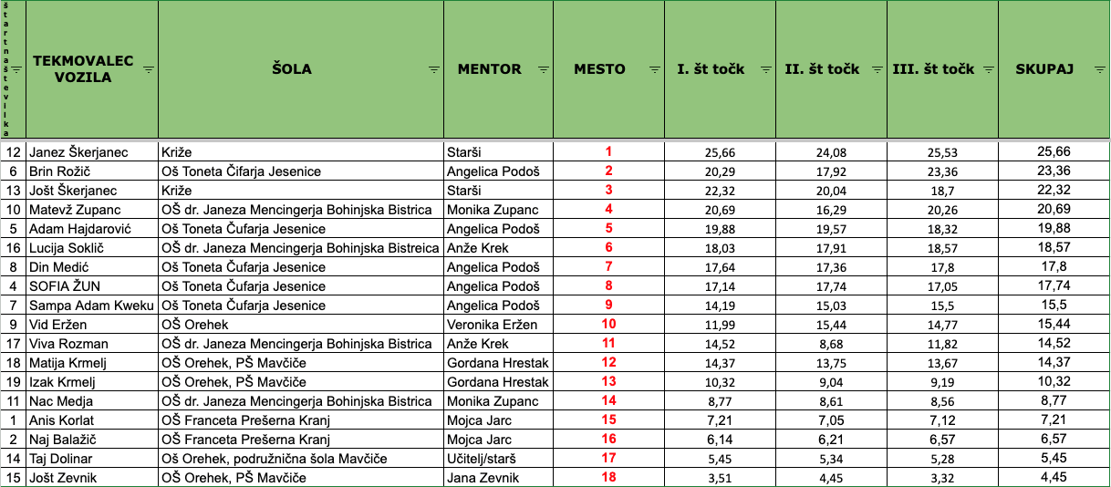 Rezultati regijskega tekmovanja 2023