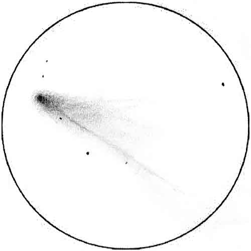 The comet moved from lower right to upper left.