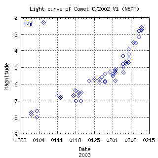 C/2002 V1 (NEAT) Date MM m1 ref inst dia DC tail ZLM observer 03.02.18.58 I [-3 7x50B - - - -3 Jure Atanackov 03.02.18.27 I [-3 7x50B - - - -3 Jure Zakrajsek 03.02.18.27 I [-3 7x50B - - - -2 Jure Atanackov 03.02.18.27 I [-4 7x50B - - - -3 Javor Kac 03.02.12.72 B !2.7: TJ 10x50B 2' 8 0.8° 5.8 Jure Atanackov 03.02.12.72 B !2.8: TJ 7x50B 3' 8 0.5° - Jure Zakrajsek 03.02.12.72 B !2.7: TJ 7x50B 2' 8 20' 5.5 Javor Kac 03.02.11.73 B !3.2 TJ 10x50B 3' 8 1.5° 5.5 Jure Atanackov 03.02.11.73 B !3.2: TJ 7x50B - 8 - - Jure Zakrajsek 03.02.11.71 B !3.3: TJ 7x50B 2' 8 0.5° 5.0 Javor Kac 03.02.10.73 B !3.5 TK 7x50B 6' 8 1.5° - Jure Zakrajsek 03.02.10.73 B !3.5 TJ 7x50B 4' 8 1.5° 6.0 Javor Kac 03.02.09.74 B !3.5 TJ 8x30B 8' 8 35' 4.5 Dunja Fabjan 03.02.07.74 B !4.2 TJ 7x50B 5' 7 2.0° 5.5 Jure Zakrajsek 03.02.07.73 B !4.7 TJ 8x30B 6' 7 35' 4.0 Dunja Fabjan 03.02.07.73 B !4.5 TJ 7x50B 5' 8 3.0° 6.4 Javor Kac 03.02.07.73 B !3.9: TJ 7x50B 4'5 8 2.0° 6.3 Jaka Dobaj 03.02.06.73 B !4.7 TJ 7x50B 5' 8 1.5° 6.0 Jure Zakrajsek 03.02.06.73 B !4.7: TJ 7x50B 4' 8 40' 5.3 Gregor Kladnik 03.02.06.73 B !4.8: TJ 7x50B 3' 8 30' 5.3 Javor Kac 03.02.05.74 B !5.3 TJ 7x50B 2'5 8 0.7° 6.0 Miha Devetak 03.02.05.74 B !5.0 TJ 7x50B 4' 8 1.5° 6.7 Gregor Kladnik 03.02.05.74 B !4.8 TJ 7x50B 6' 8 1.0° 6.7 Javor Kac 03.02.05.74 I !4.5 TJ NE - 8 - 6.7 Javor Kac 03.02.05.73 B 4.3 TJ 10x50B 5' 8 0.4° - Jure Atanackov 03.02.02.74 B 5.8 TJ 8x30B 7' 5 15' 4.5 Dunja Fabjan 03.02.02.74 B 5.2 TJ 7x50B 5'5 8 40' 6.5 Javor Kac 03.02.02.74 B 5.1 TJ 7x50B 4' 8 17' 6.3 Jaka Dobaj 03.02.02.74 B 5.3 TJ 7x50B 5' 8 30' 5.5 Jure Zakrajsek 03.02.02.73 B 5.3 TJ 10x50B 6' 7 0.4° 5.8 Jure Atanackov 03.02.01.75 B 5.2 TJ 7x50B - - - 6.0 Jaka Dobaj 03.02.01.74 B 5.4 TJ 7x50B 6' 8 30' 6.1 Javor Kac 03.02.01.73 B 5.5 TJ 10x50B 8' 7 2.0° 6.4 Jure Atanackov 03.01.31.73 B 5.3 TJ 10x50B 10' 7 0.8° 6.3 Jure Atanackov 03.01.29.79 M 5.9 TJ 8x30B 5' 7 - 4.5 Dunja Fabjan 03.01.29.74 S 5.4: TJ 7x50B 4' 8 - 4.5 Javor Kac 03.01.29.73 B 5.8 TJ 10x50B 9' 7 0.5° 6.3 Jure Atanackov 03.01.28.73 B 5.6 TJ 10x50B 9' 7 1.1° 6.7 Jure Atanackov 03.01.27.78 M 5.9 TJ 8x30B 5' 7 - 4.5 Dunja Fabjan 03.01.27.78 M 5.7 TJ 10x50B 8' 7 18' 6.2 Jure Atanackov 03.01.25.72 M 5.7 TJ 10x50B 7' 6 - - Jure Atanackov 03.01.23.72 M 5.8 TJ 10x50B 11' 6 25' 6.3 Jure Atanackov 03.01.20.75 M 7.0: TJ 7x50B 8' 7 20' - Jure Zakrajsek 03.01.20.75 M 6.5 TJ 7x50B 7' 6 20' 6.0 Javor Kac 03.01.19.72 M 6.5 TJ 10x50B 6' 5 - 6.2 Jure Atanackov 03.01.18.72 M 6.4 TJ 10x50B 6' 5 - 5.2 Jure Atanackov 03.01.17.76 S 6.7: TJ 7x50B 4'5 6 - 5.2 Javor Kac 03.01.12.73 S 6.8 TJ 10x50B 9' 3 - 5.6 Jure Atanackov 03.01.11.78 S 6.6: TJ 7x50B 8' 3 - 5.6 Javor Kac 03.01.03.79 S 8.0 TJ 7x50B 12' 4 - 6.5 Javor Kac 03.01.03.76 M 7.6: TK 10x50B 12' 4 - 6.1 Jure Atanackov 03.01.01.80 S 7.7: TJ 7x50B 10' 3 - 6.4 Javor Kac