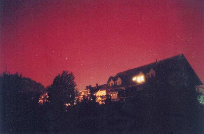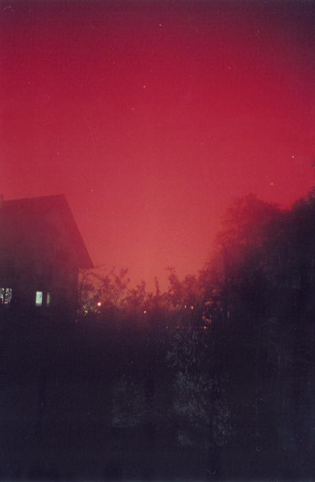 came at 00:45 UT with intense red glows reaching 50 degrees high, forming