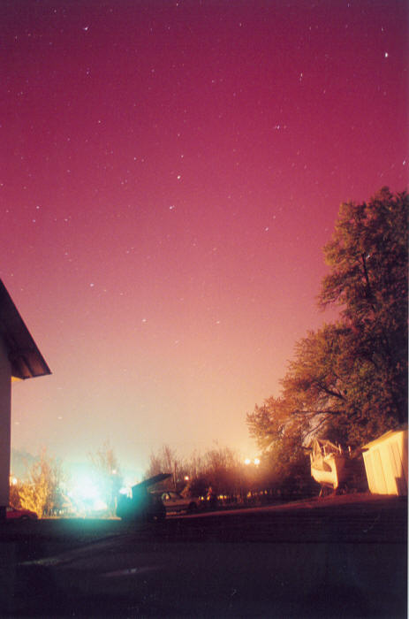 glow reaching 50 degrees high. Rays and pillars. Glow