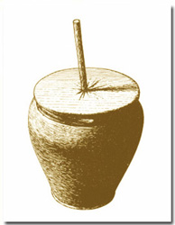 lonec. Čez odprtino v loncu napnemo svinjski mehur. Sredi te opne