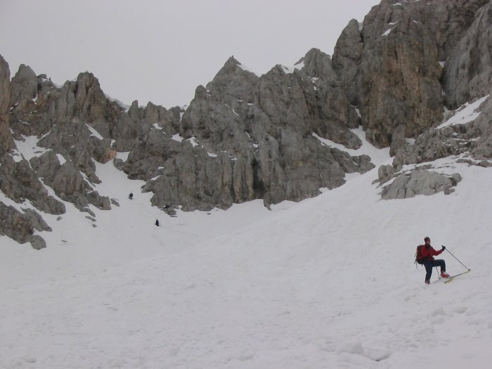 Zatrep Velike Dnine pod veznim grebenom med Oltarjem in Veliko Ponco.