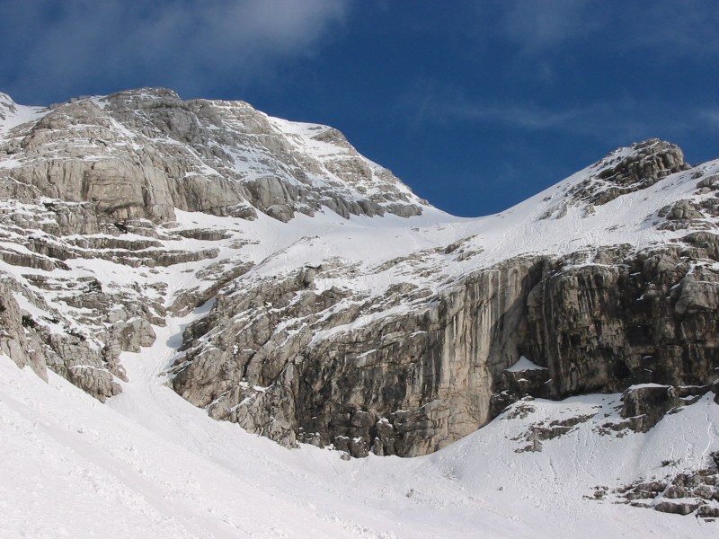 Župančičeva smer se vzpne po žlebu na levi in čez zgornje snežišče do "sedla", kjer zavije levo v izstopni žleb.