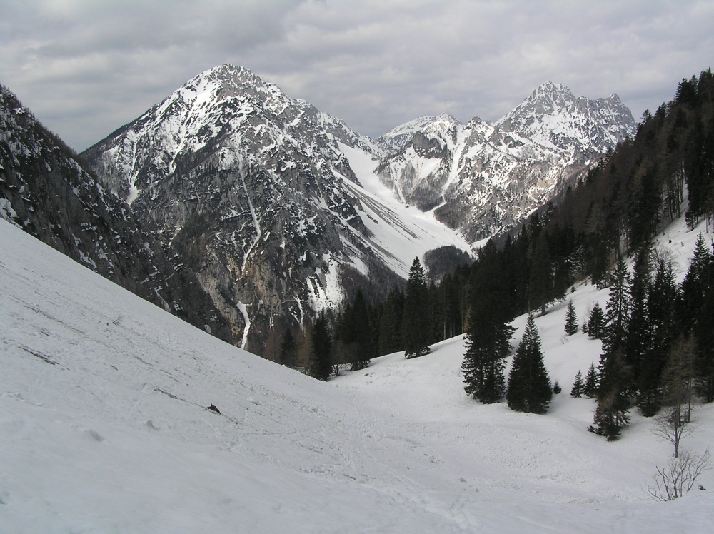 Spodaj ravnica z odcepom na planino Korošco, zadaj Begunjščica, Stol, Vrtača, Palec.