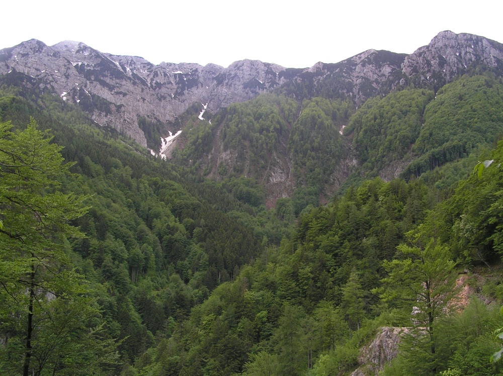 Zid nad Koritom, zatrepom Koritarice, od Srednjega vrha na levi do Licjanovca na desni.