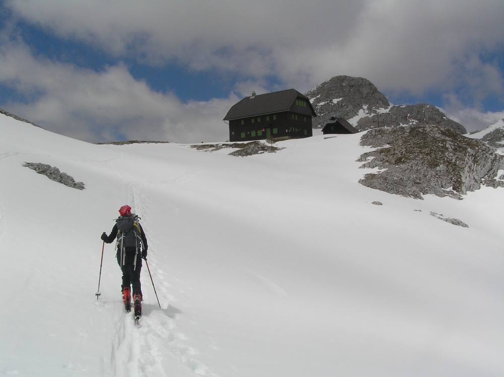 Dom Valentina Staniča, za njim Begunjski vrh.