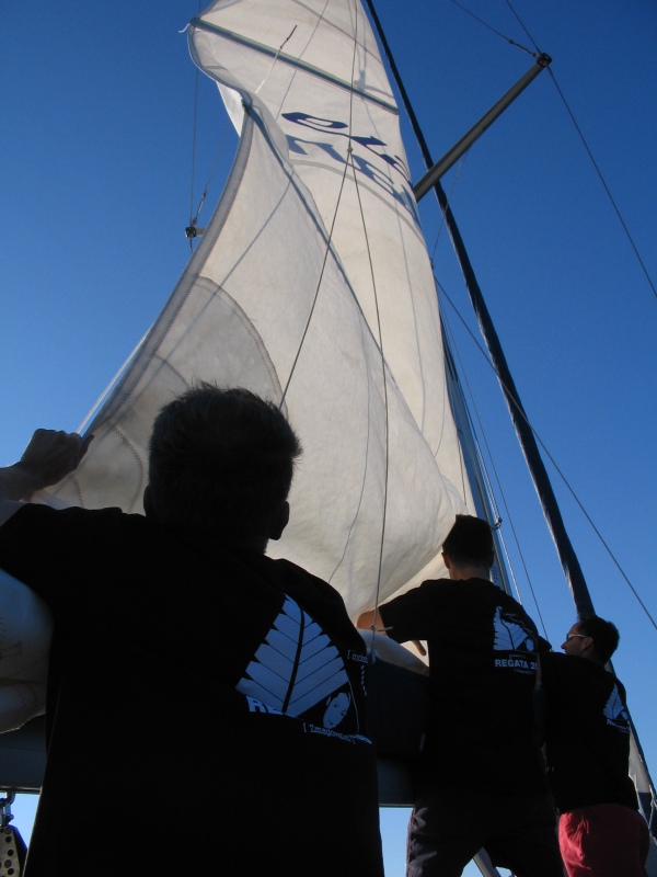 Pospravljanje glavnega jadra.