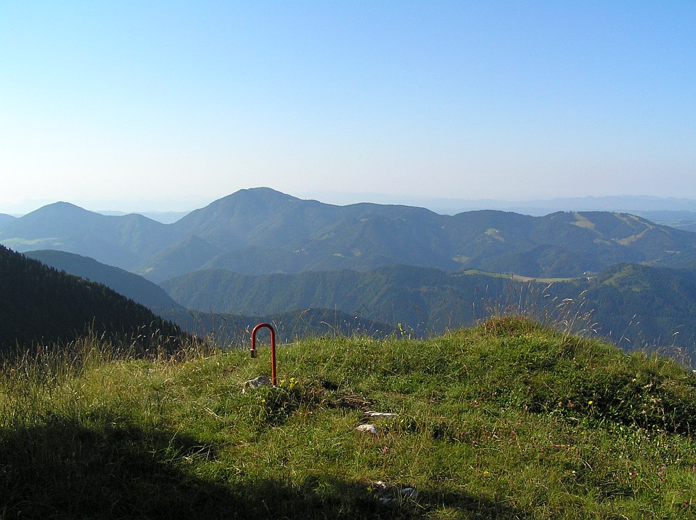 Žig na Kačjem robu, zadaj Koprivnik, Blegoš, Črni vrh.
