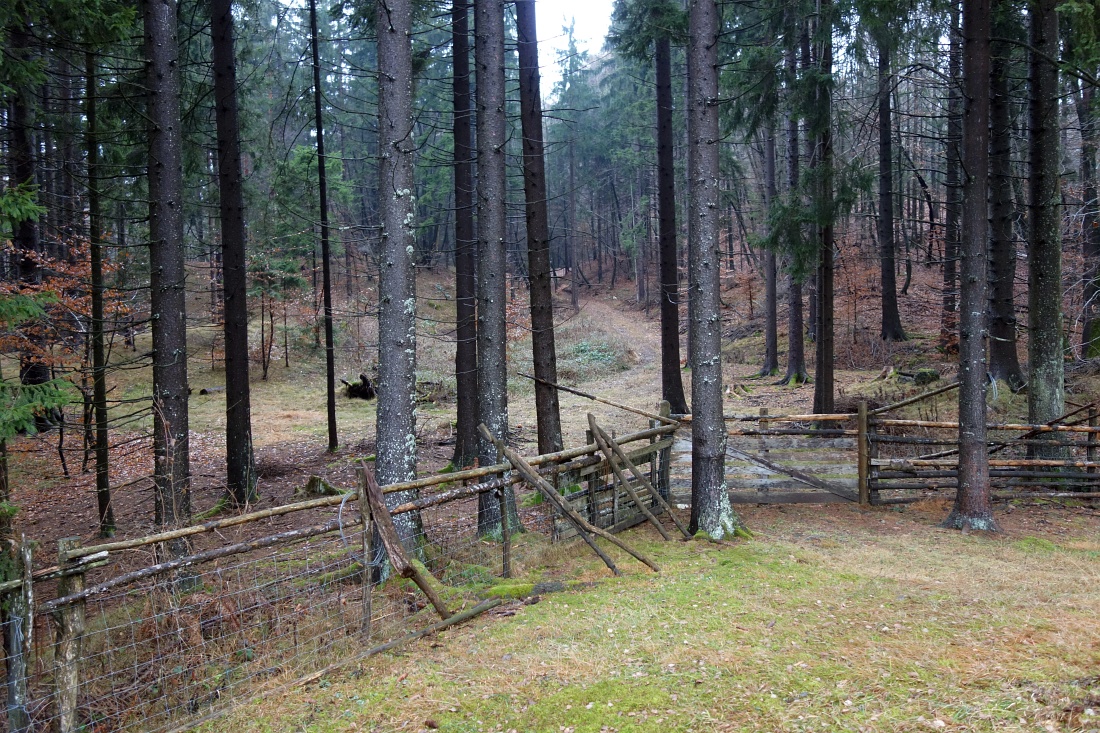 Vstop v gozd pod vrhom Kuhovnice.