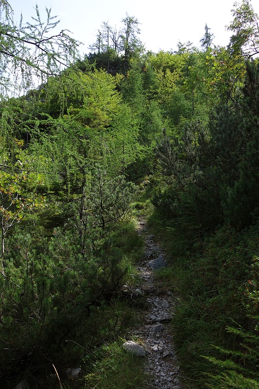 Ne manjka niti odsek z ruševjem in macesni.