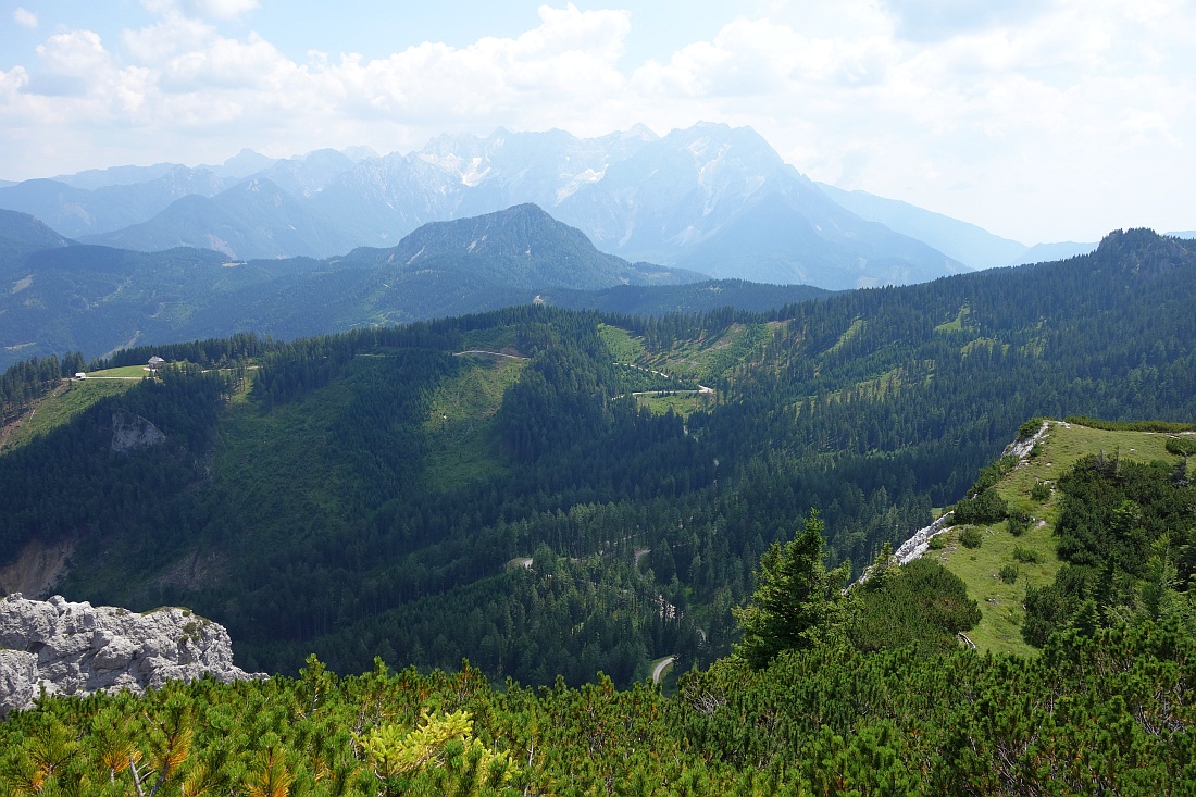 Povsem desno Pečovnik, na sredi Virnikov grintovec, zadaj Grintovci.