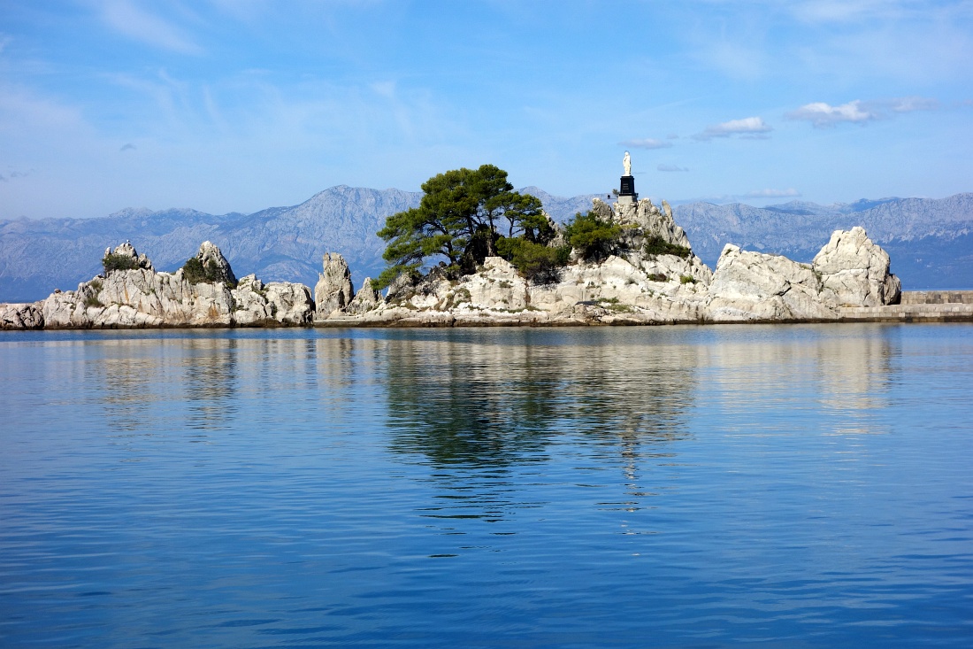 Skale, ki tvorijo del severnega lukobrana luke Trpanj.