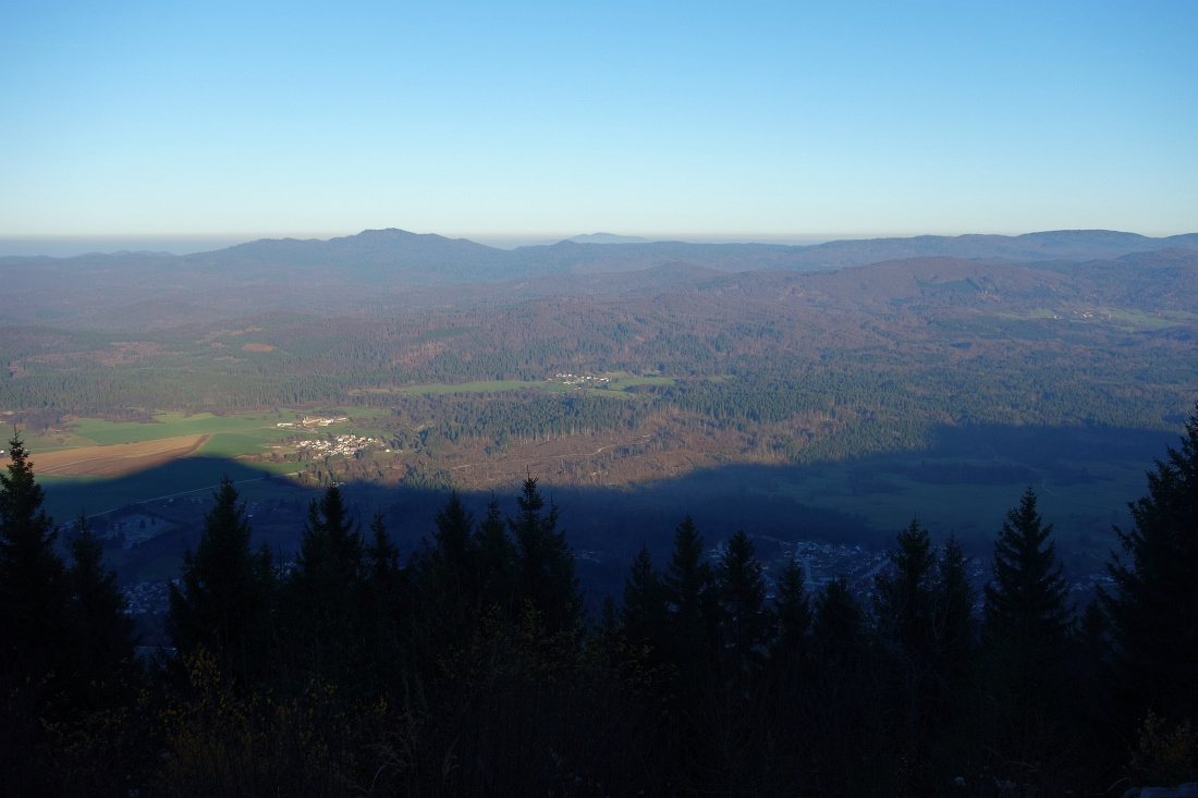 Razgled od klopce: Rog in senca Mestnega vrha.