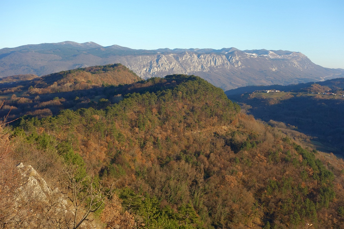 Pogled z Ostrega vrha: Trešnik, Planina, Nanos.