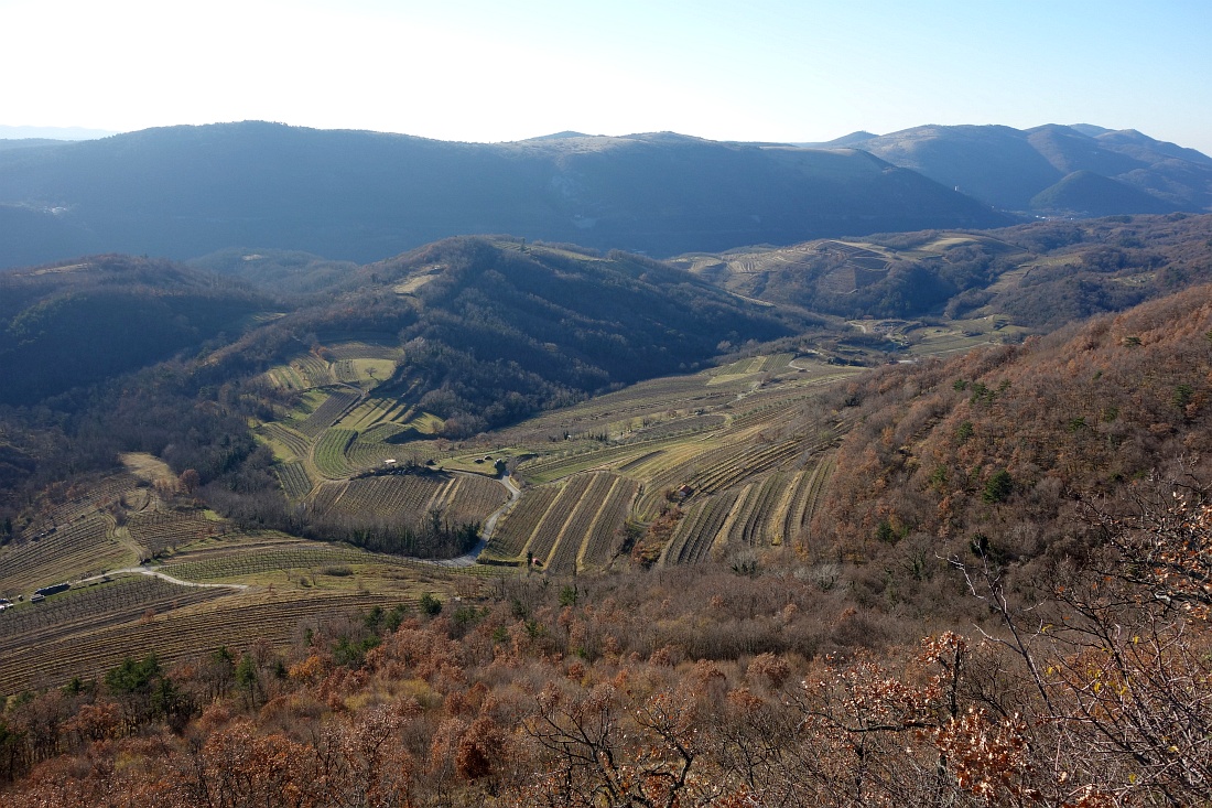Razgled z V. Školja: veriga hribov na robu Krasa.