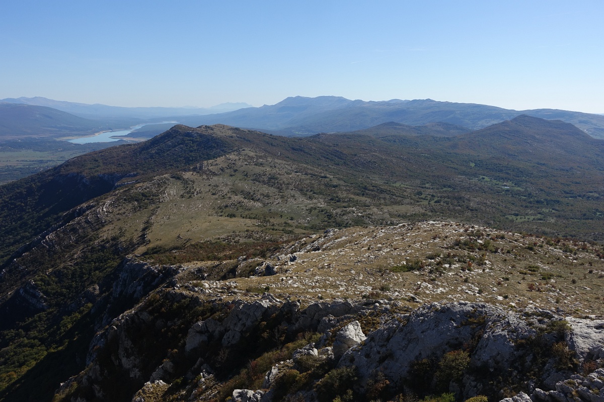 Pogled čez Kozjak, proti Svilaji in Peručkemu jezeru.
