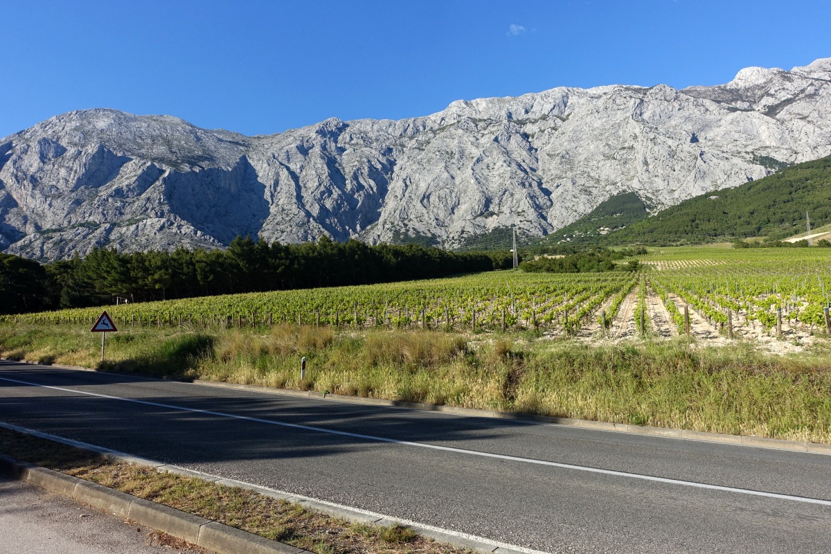 Popoldanski pogled na zid nad Bastom. Levo Ščirovac, na sredi Sv. Ilija, desno Korenik.