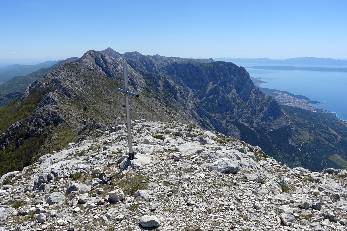 Pogled s Ščirovca proti Iliji in Juretu. Spodaj Makarska.