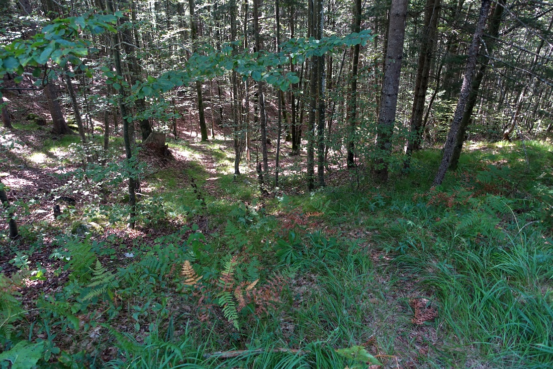 Steza s kratkega S-ovinka gozdne ceste.