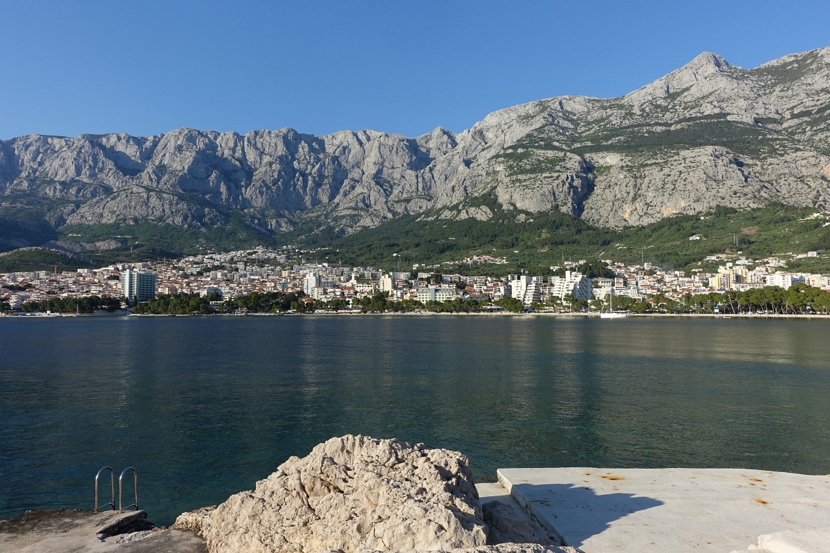 Zid nad Makarsko. Kopica na desni je makarska "hišna gora", Vošac.
