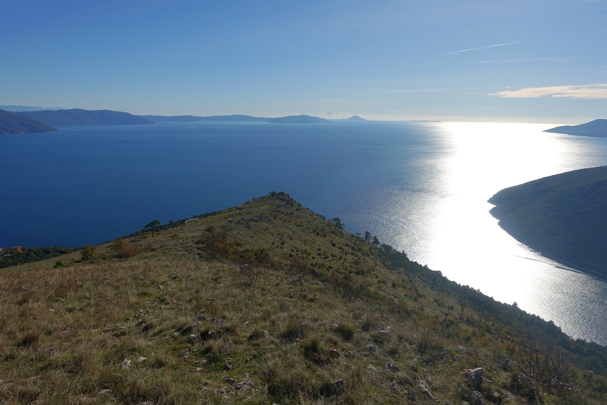 Greben nad rtom Mašnjak, pogled čez Kvarner.