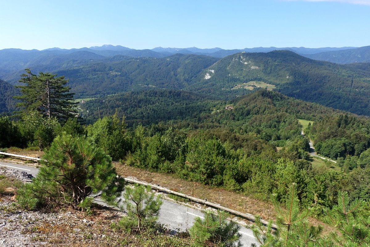 Pogled s Strme rebri: desno Sveta gora, levo od nje Hrib Skednarji.
