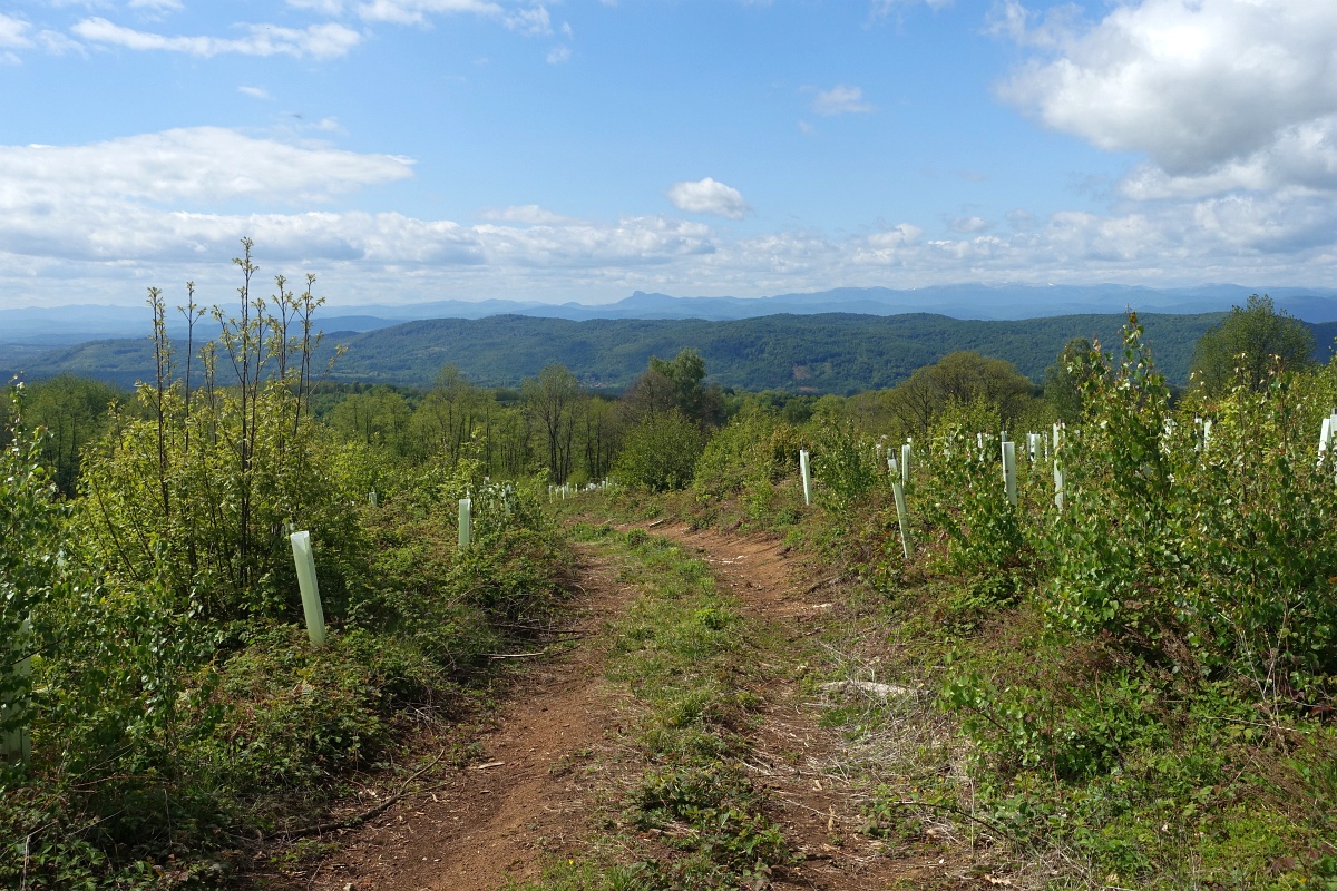 Druga velika poseka, tik pod vršnim temenom Vodenice, ponuja širok razgled. Klek.