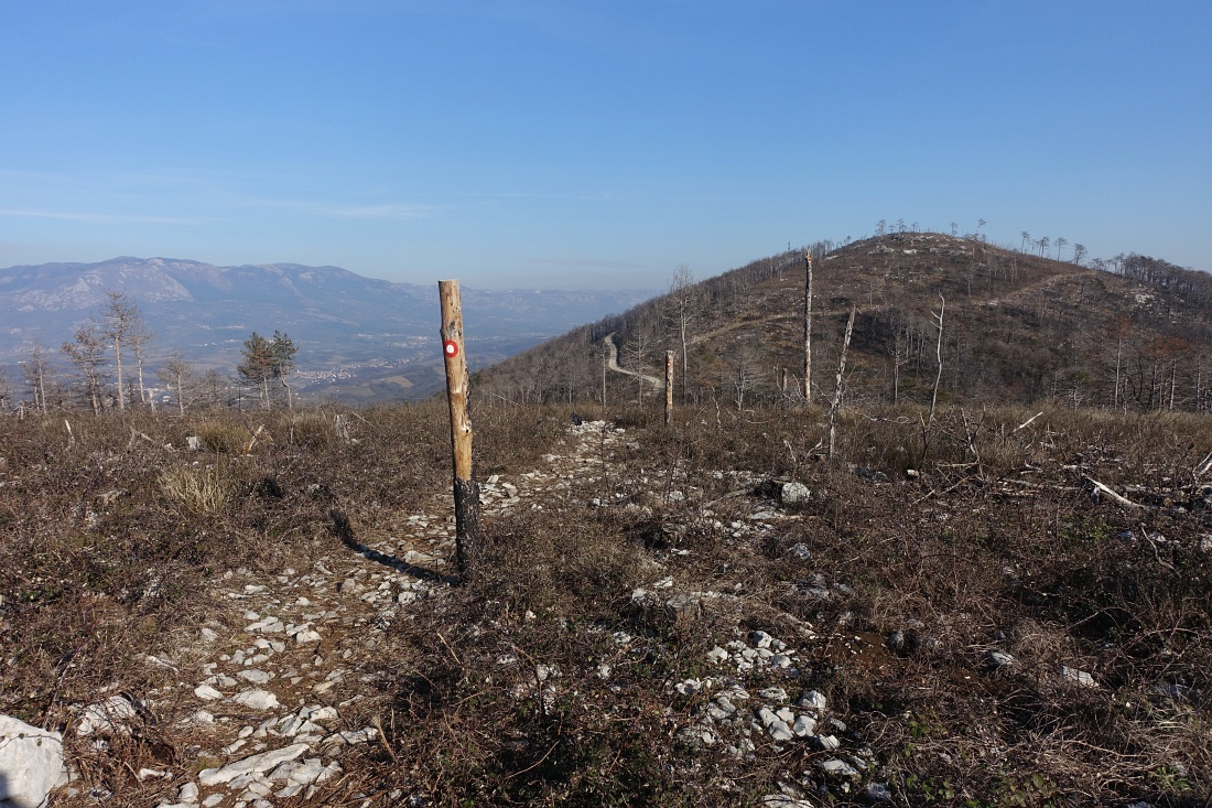 Pogled z Vrtovke nazaj na Lešenjak. Na drugi strani doline je Čaven.
