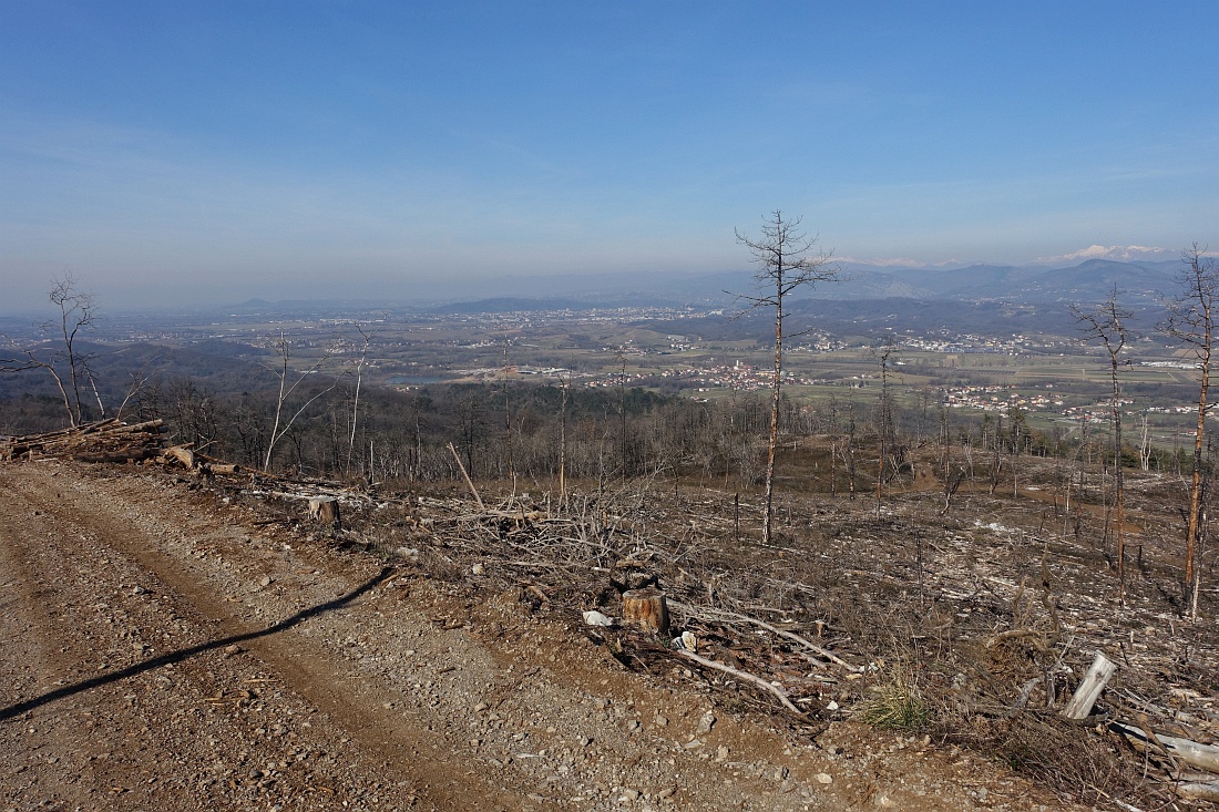 Pogled s spodnje prečne gozdne ceste.