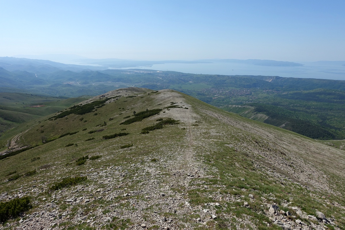 Južni hrbet Čunine glave, s kolesarskimi sledmi.