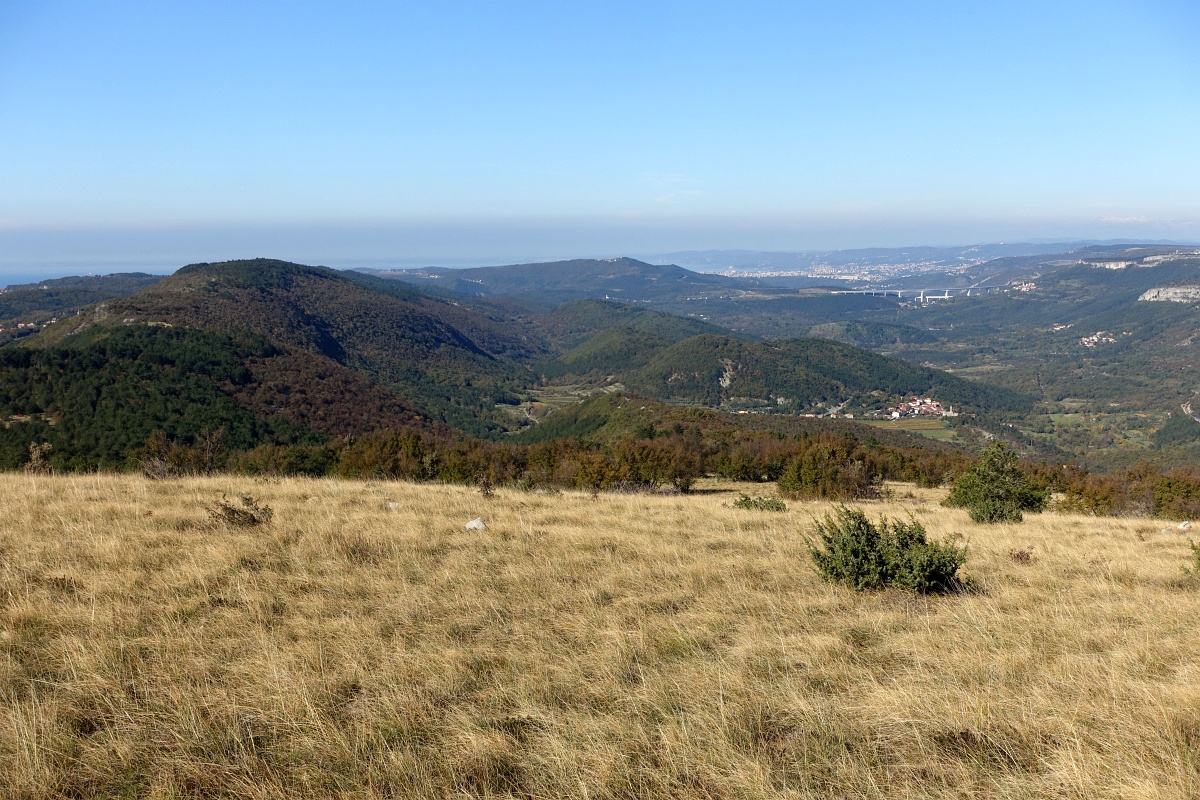 Levo Lačna, spodaj Hrastovlje, zadaj Črnokalski viadukt in Trst.