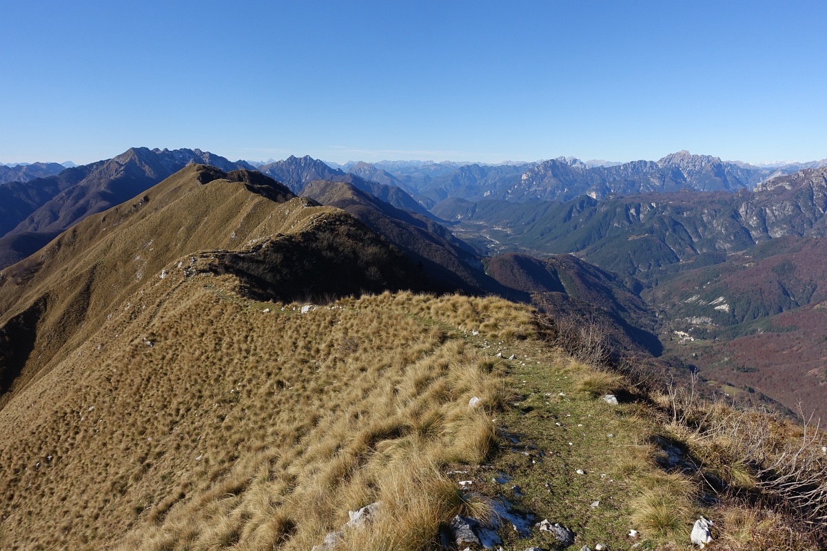 Skutnikov greben proti zahodu. Spodaj Rezija.