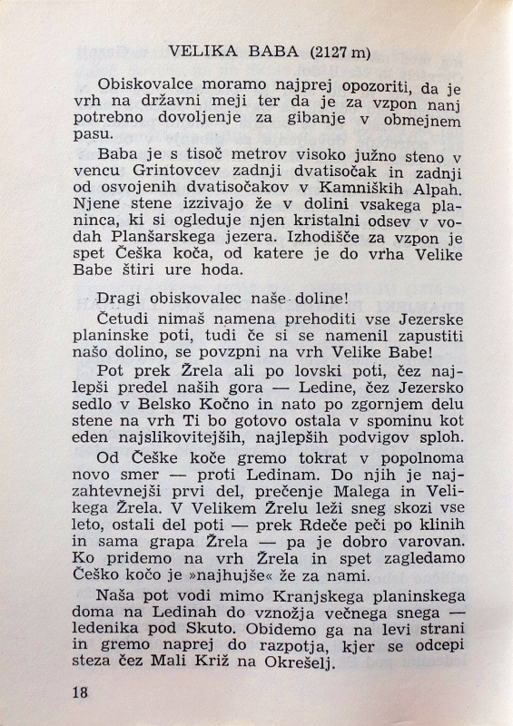 Iz dnevnika Jezerske planinske poti, natisnjenega leta 1980.