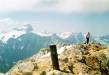 Da se je medtem od kdo ve kod nad Julijce privlekla visoka oblačnost, sva opazila šele, ko sva se na vrhu vsedla in odprla nahrbtnika, kajti postalo je kar svinjsko mrzlo. Marjan je navlekel nase obleko, se plasiral na veliko ploščato skalo in za pol ure zaspal, jaz pa sem medtem izumljal štempljanje s pomočjo, na srečo še vlažne, tintaste krpice, najdene na dnu skrinjice.