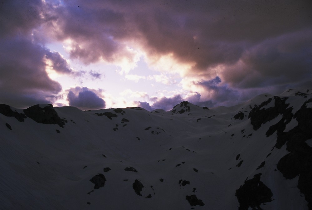 Večer pod Debelim vrhom. Pogled proti najvišjemu Vršaku.