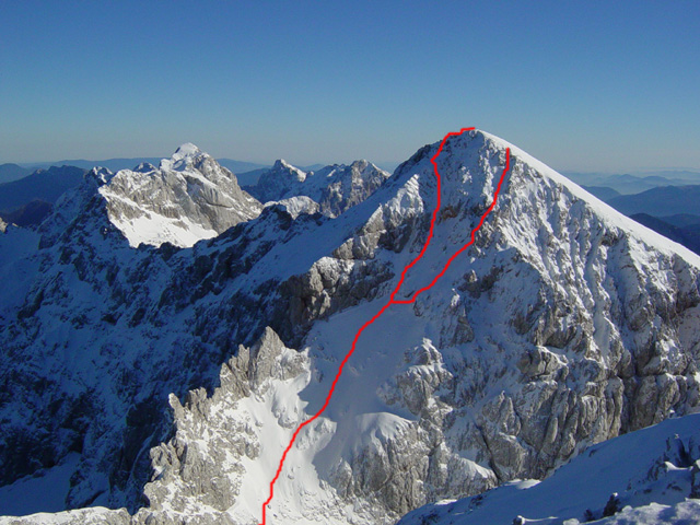 Levi odcep je osnovna varianta zimskega pristopa iz Dolcev.