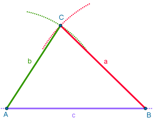 Opomba: Najpogostejša napaka je, da iz točke A namesto dolžine stranice b (pravilno) rišemo dolžino stranice a (napačno). Podobno iz točke B dolžino stranice b (napačno) namesto a (pravilno).