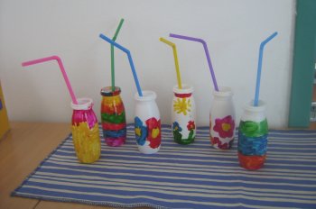 odstranili etikete, nato smo nanje z barvami za steklo naslikali