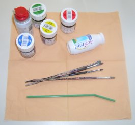 - plastenko od jogurtovega napitka - barve za steklo - tanjše čopiče - slamico - čistilo za čopiče |