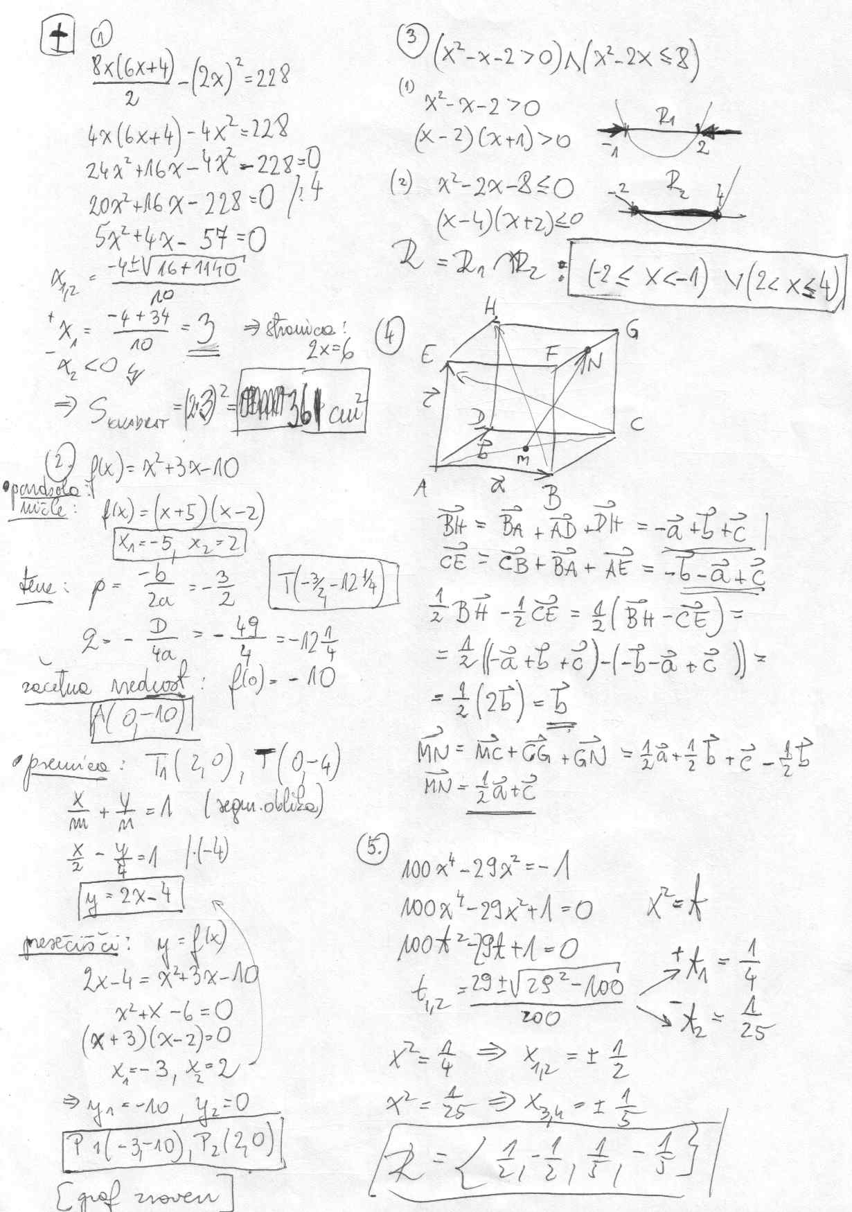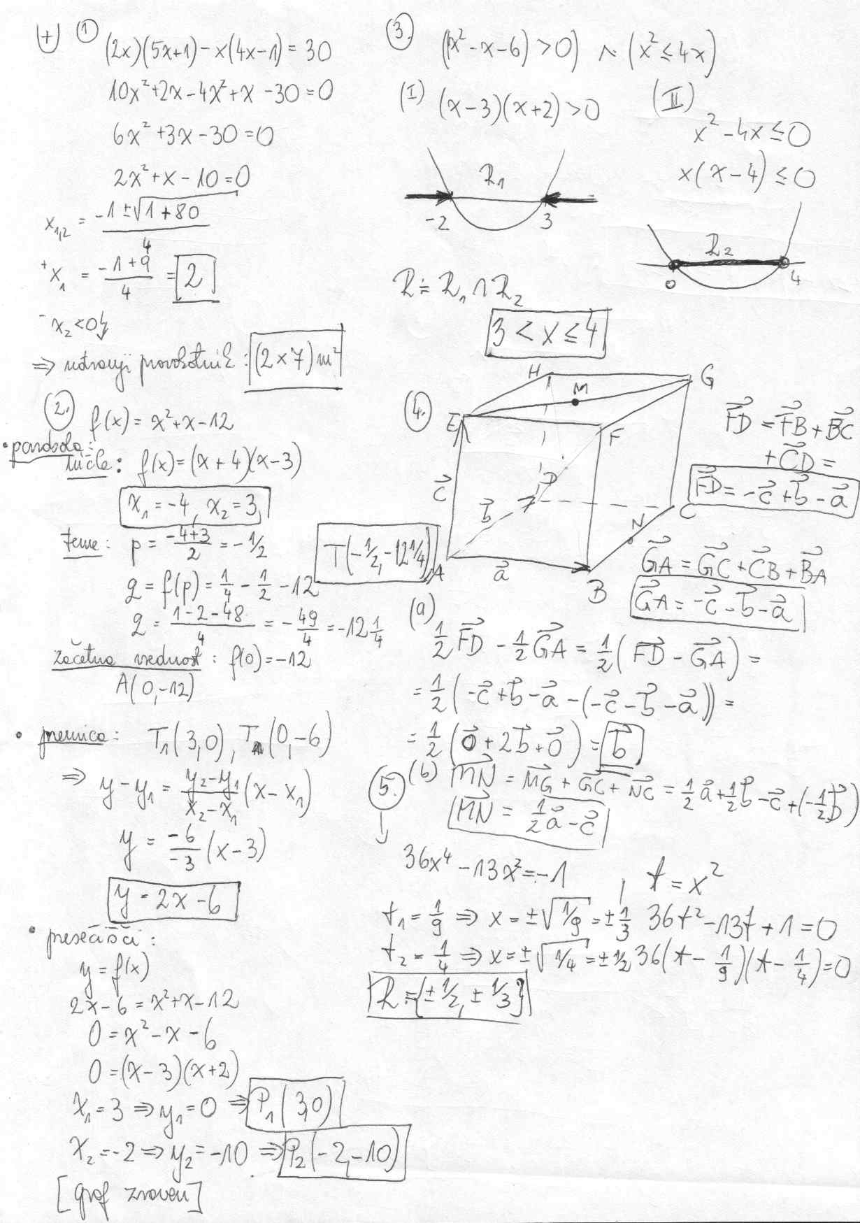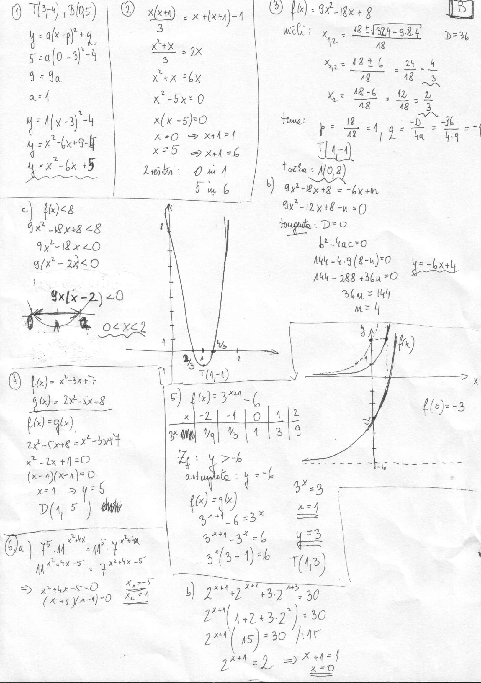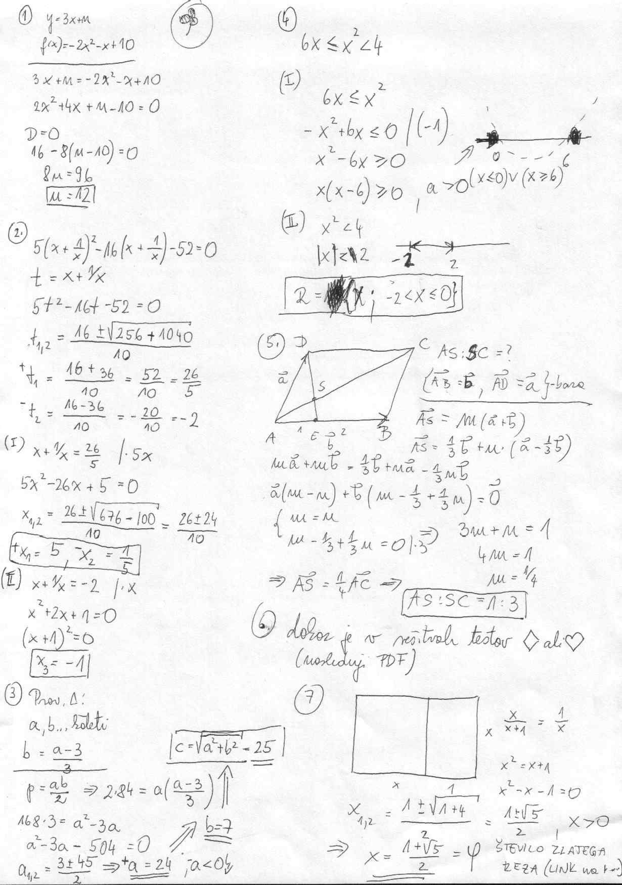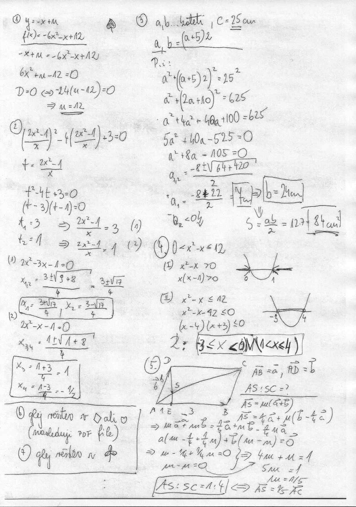 Kvadratna funkcija, enačba, neenačba- Vzorci Testov |
