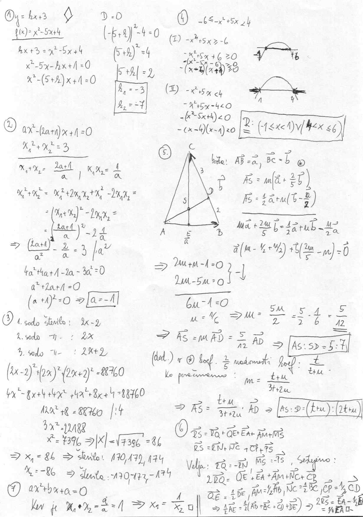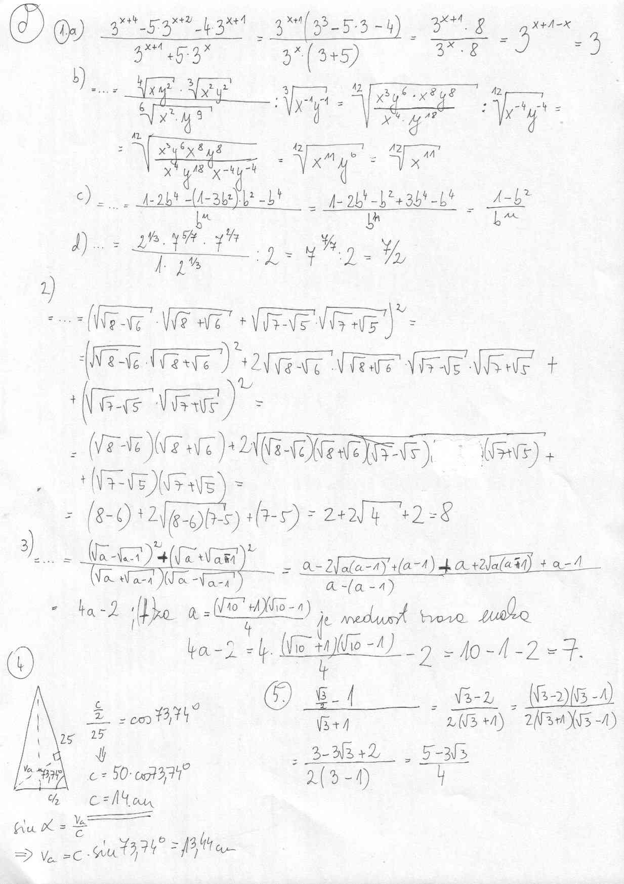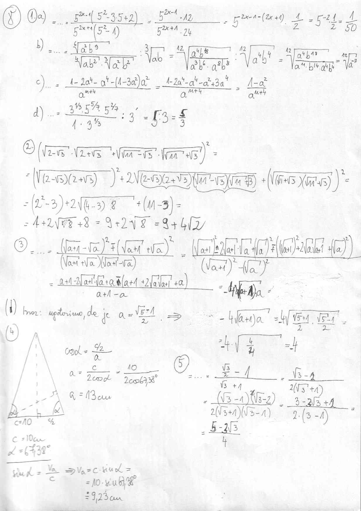 Opomba1: Ker naloge v večini niso opremljene z rezultati, ponujam svojim dijakom za vajo in izziv, da naloge rešijo in mi jih v ustrezni digitalni obliki pošljejo po e-pošti ali kako drugače posredujejo (najlepše so *.tex datoteke, lahko tudi *.doc ali kar skenirana slika nizke ločljivosti-majhne kapacitete).Vsi solidni izdelki bodo objavljeni in v okviru pouka tudi ustrezno nagrajeni. To velja tudi za ostale... Cilj je urediti stran kot bazo nalog z rešitvami, ki bi bila lahko v prihodnosti dober brezplačen pripomoček pri učenju matematike.