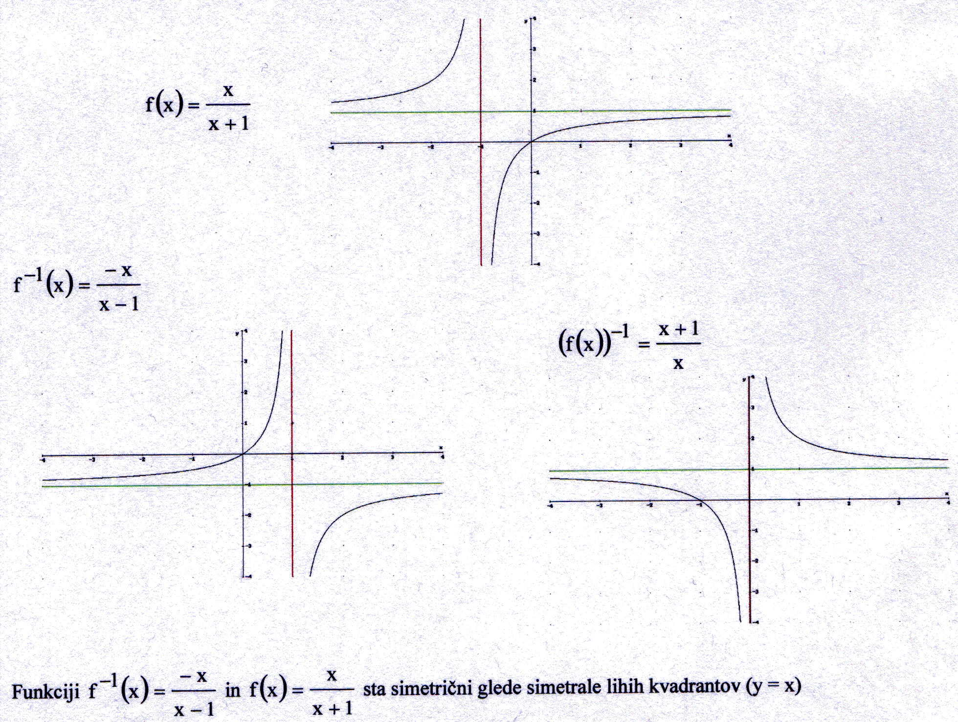 Želimo predstaviti razliko med funkcijami f(x) na eni strani in funkcijami f –1(x) ter (f(x)) -1 na drugi strani.