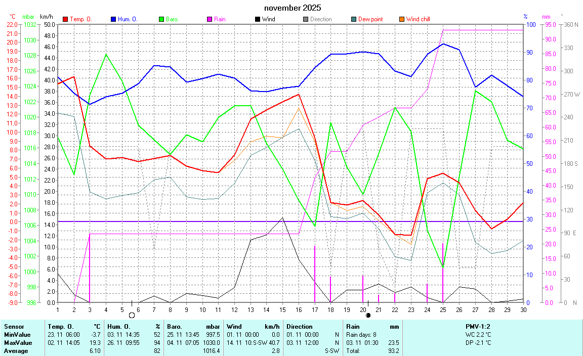 | The values are representing the Data of the current Day! Barometer is corrected to sealevel! | |||||||||||||||||||||||||||||||||||