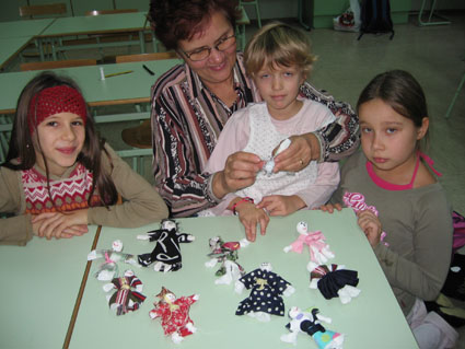 pomočjo babice izdelali vsak svojo "pupo" (punčko iz cunj).