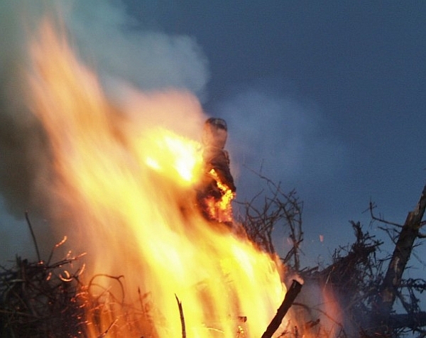 Na severu Danske imajo običaj, da junija obredno zažgejo lutko čarovnice na plaži. Tversteed, Danska
