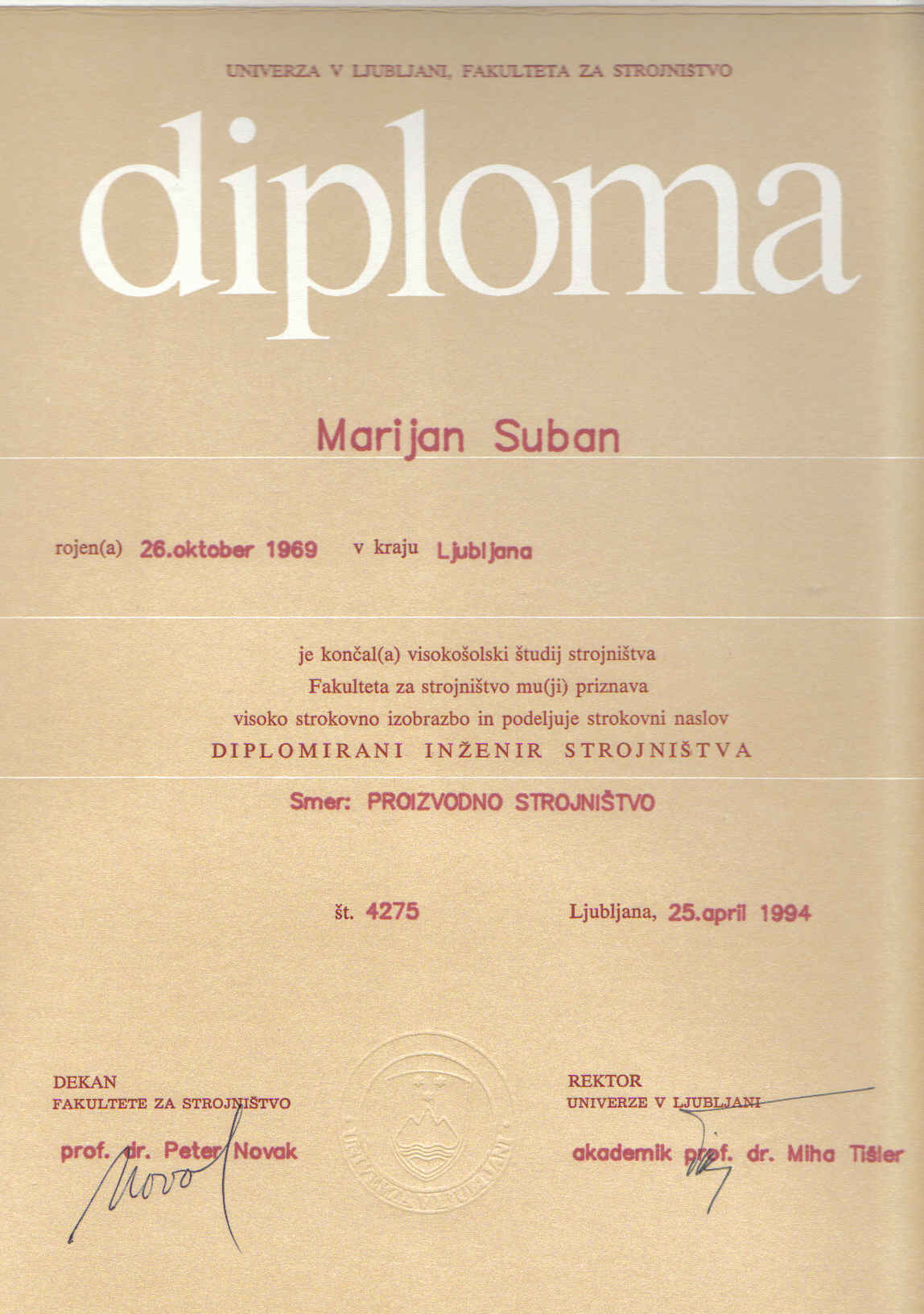 1989-1994FAKULTETA ZA STROJNIŠTVO, UNIVERZA V LJUBLJANI - DIPLOMA