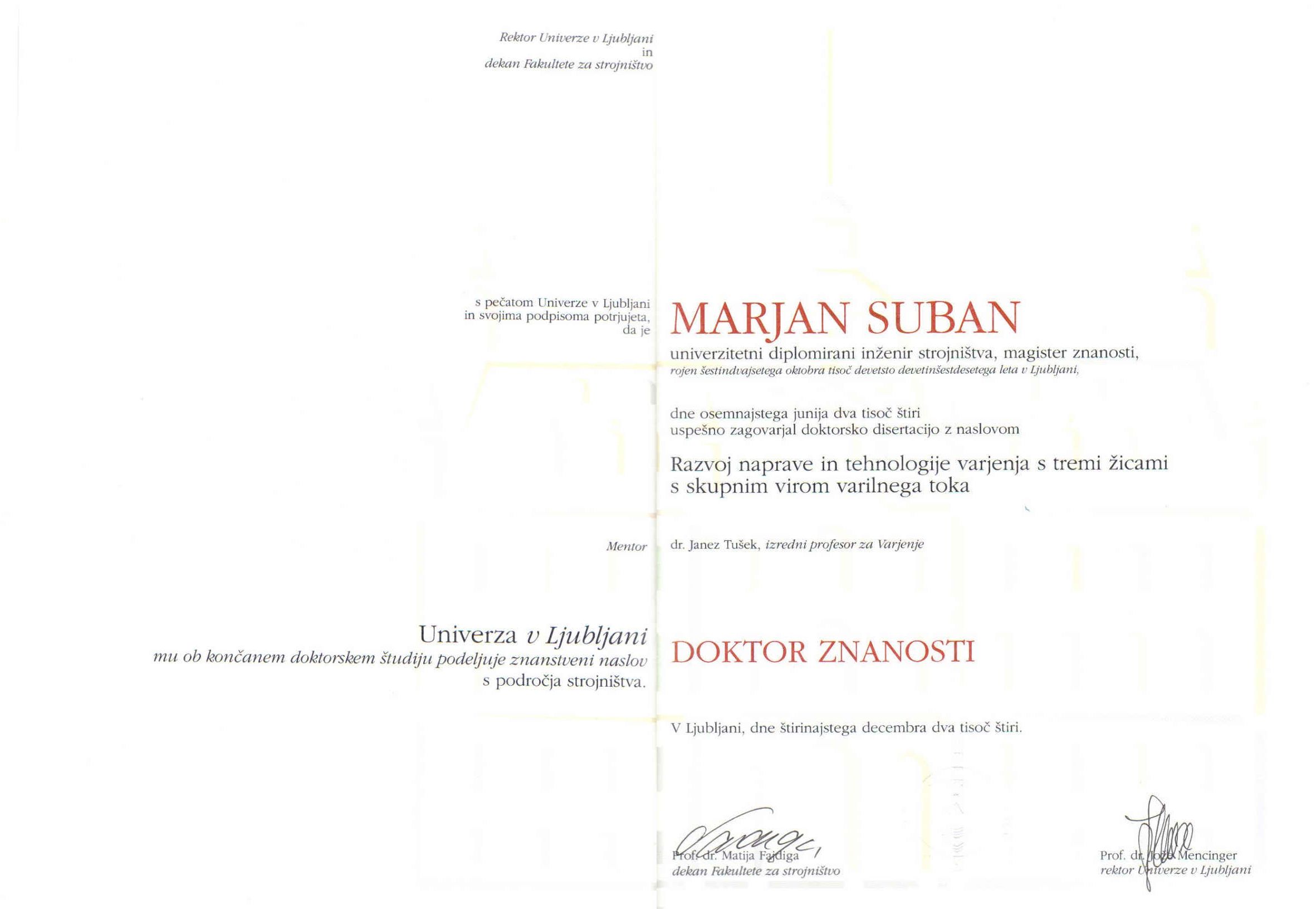 Podiplomski študij, kjer sem se v glavnem ukvarjal s temami povezanimi z varjenjem sem zaključil z doktorsko nalogo "Razvoj naprave in tehnologije varjenja s tremi žicami s skupnim virom varilnega toka"