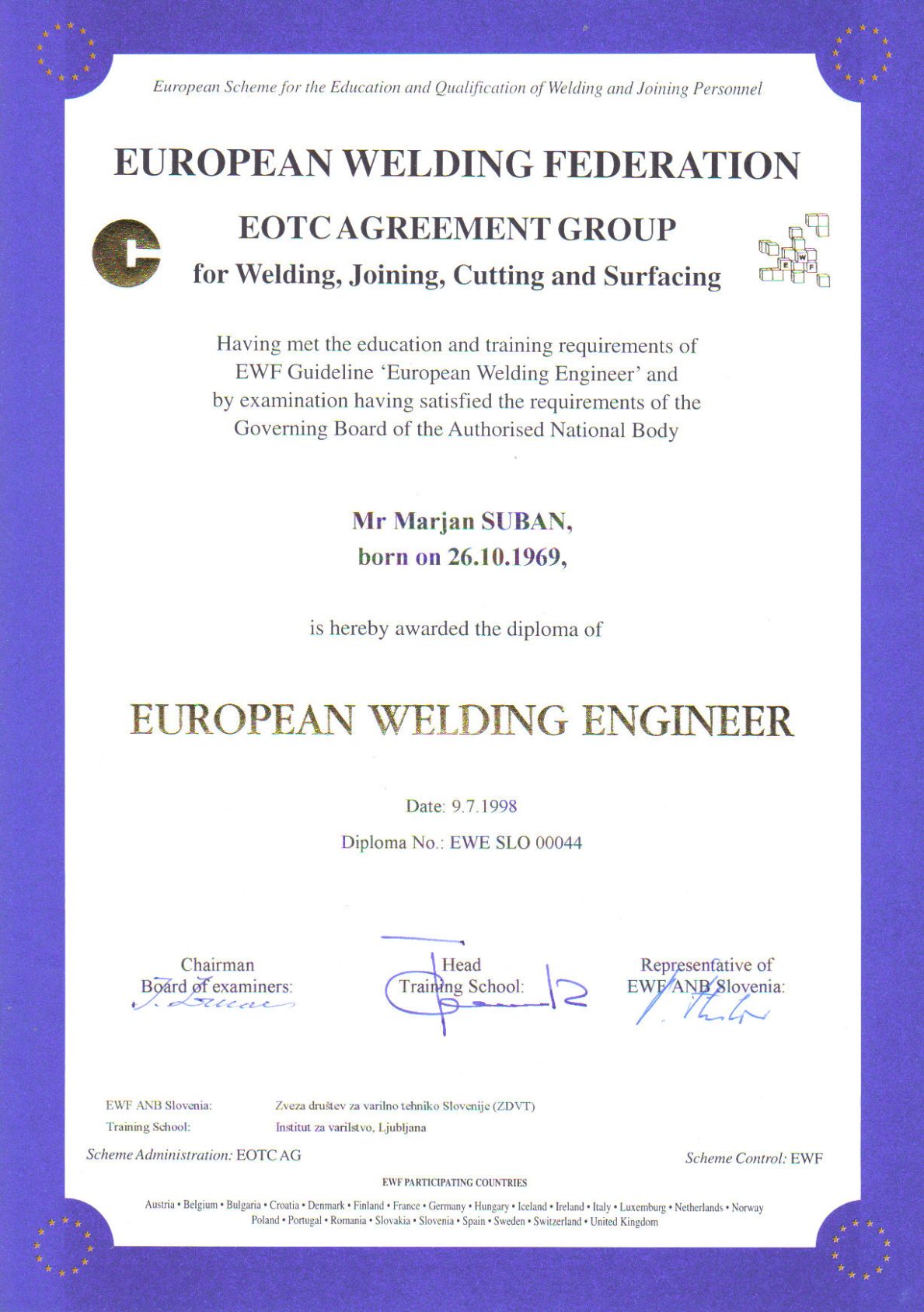 1994-1995MEDNARODNI (EVROPSKI) VARILNI INŽENIR (IWE / EWE)