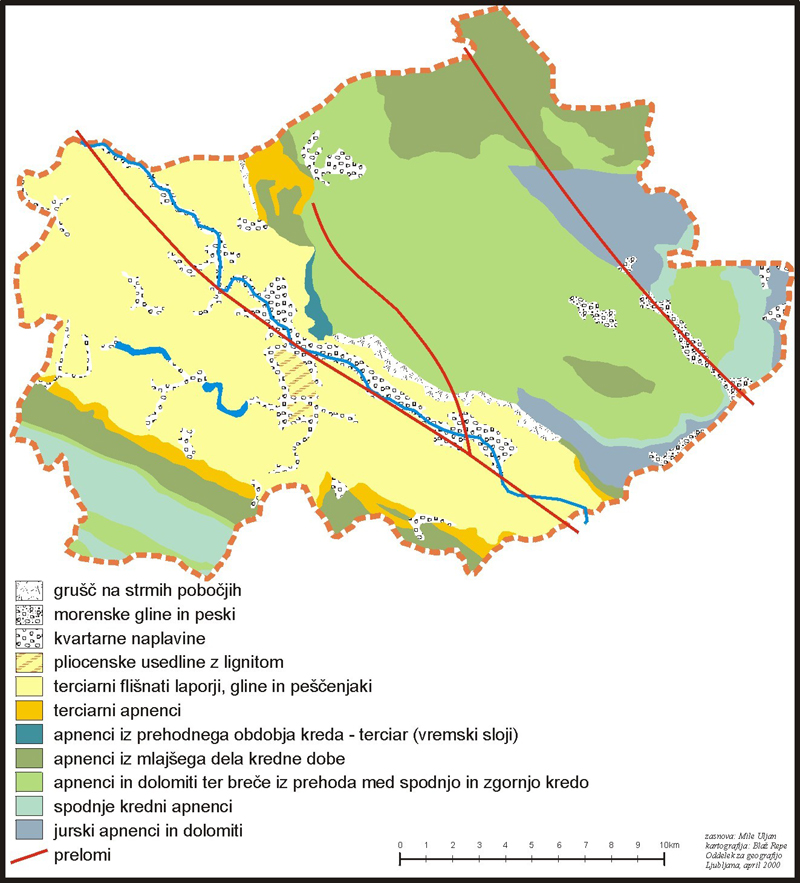 Na področju flišnih sedimentov je prelomov sicer več,